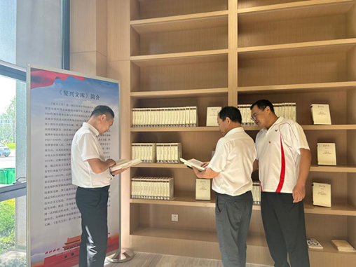 活动在诗歌朗诵《党在我心中》中拉开序幕。机关三支部全体党员满腔热情在齐诵中歌颂中国共产党百年征程的波澜壮阔,展现百年初心的历久弥坚。副院长尹家经、孙细望,院长助理郭明虎带领机关三支部党员在图书馆党建中心参观学习。