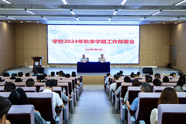 本网讯 2024年工作推进情况如何?目标考核指标完成怎么样?下半年重点做好哪些工作?8月31日上午,学校在B-112学术报告厅召开秋季学期工作部署会。学校领导李兴祥院长以《认真谋划 狠抓落实 推动学校转设和高质量发展》为题,总结分析2024上半年及暑期工作,安排部署秋季学期重点工作。党委书记颜建洲主持会议。