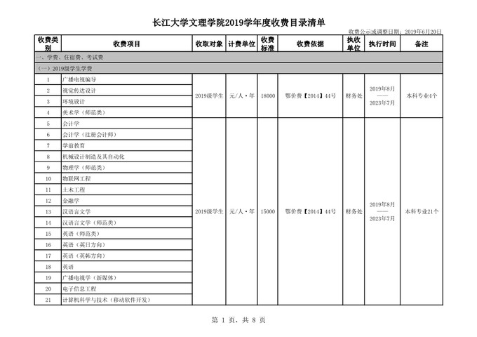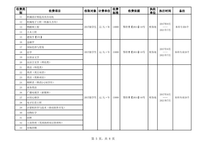 根据省教育厅、省物价局《关于我省民办普通高等学校学费标准备案及有关问题的通知》(鄂价费(2016)63号文)的文件精神,经向湖北省教育厅、湖北省物价局备案,williamhill官网2019年收费目录清单公布如下: