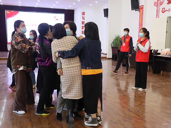 讲座结束后,还开展了桃花朵朵开、你画我猜、老鹰捉小鸡等系列团体游戏,社区工作人员在趣味游戏中有效放松情绪。