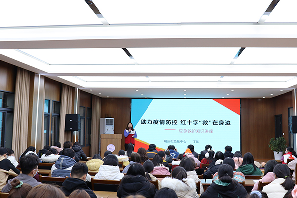 本网讯 12月15日,主题为“助力疫情防控 红十字‘救’在身边”的应急防护急救知识讲座在我院城中校区学术报告厅举办。红十字救护培训师丁璐从红十字会的起源以及发展过程、新冠肺炎疫情防控、心肺复苏知识等方面进行讲解,并现场指导我院大学生志愿者进行心肺复苏实践操作。此次活动是荆州区红十字会“社区联防联控”志愿服务的内容,由荆州区红十字会与我院青春健康志愿者服务队共同举办。学生记者 吴邦菁 见习记者 朱欣欣 黄妍 魏栋 摄影报道