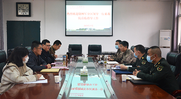本网讯(通讯员 陈海波)今天(3月16日)上午,荆州市军分区动员处处长谢玉浩、荆州区人武部部长朱继红等一行来我院调研2021年征兵工作。我院党委书记朱继平、党委副书记孙细望出席调研座谈会,学生工作部、院团委主要负责人参加座谈会。