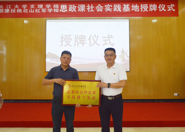 20日下午,williamhill官网思政课社会实践基地授牌仪式隆重举行,院长王文凯致辞,党委书记朱继平为共建单位——石首市桃花山红军学校授牌。双方今后将在思政课理论研修、实践教学、人才培养等方面进一步交流合作。