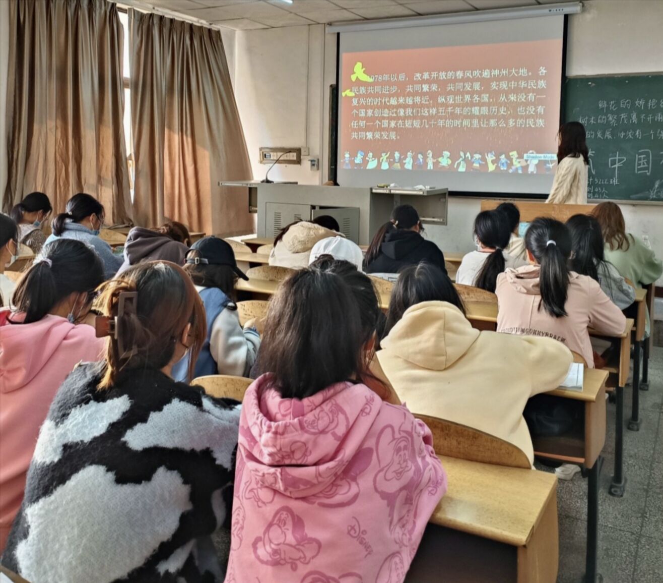 本网讯(通讯员 邵娟)11月17日为了能够培养大学生团结友爱 民族团结 守望相助 共同实现民族复兴的伟大梦想的意识,我系大一 大二 大三的同学们有序开展了以“民族团结一家亲,同心共筑中国梦”为主题的团课。