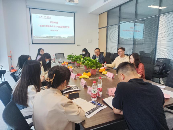 本网讯(通讯员许晶洁)为进一步了解用人单位岗位人才需求,拓宽毕业生就业渠道,搭建毕业生和用人单位交流平台,加强校企联系。5月5日,管理学院邀请星火教育佛山分公司进校园进行交流学习与调研。星火教育佛山分公司负责人梁俊,学生就业指导处处长刘美林,及外国语学院、数学与医护系、人文与传媒学院学工负责人,陈湘老师等参加会议。此次会议由管理学院党总支书记胡沿林主持。