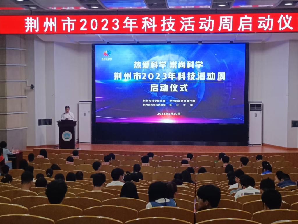 (本网讯 通讯员:李颖)5月20日,荆州市科技活动周启动仪式在长江大学报告厅举行。荆州市政协主席蒋鸿、荆州市政府副市长金鹏、长江大学副校长吕一兵、荆州市政府副秘书长郭劲松,荆州市科技局党组书记、局长胡应国,荆州市委宣传部副部长郭磊、市科协主席李雄文,市各有关单位负责人,williamhill官网管理学院30余名师生代表参加启动仪式。
