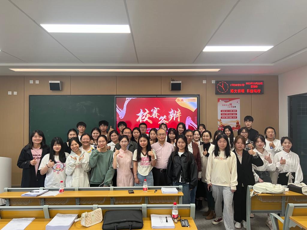 专家评委们在答辩过程中认真聆听,并针对每个团队的策划方案提出了宝贵的意见和建议。经过紧张激烈的角逐,评委们最终选出了优胜团队。他们的报告在数据分析的针对性、营销IP策略的创新性和广告语设计等方面表现出色,引起了评委们的赞赏和认可。最后所有参赛选手跟评委和指导老师们一起合影留念。