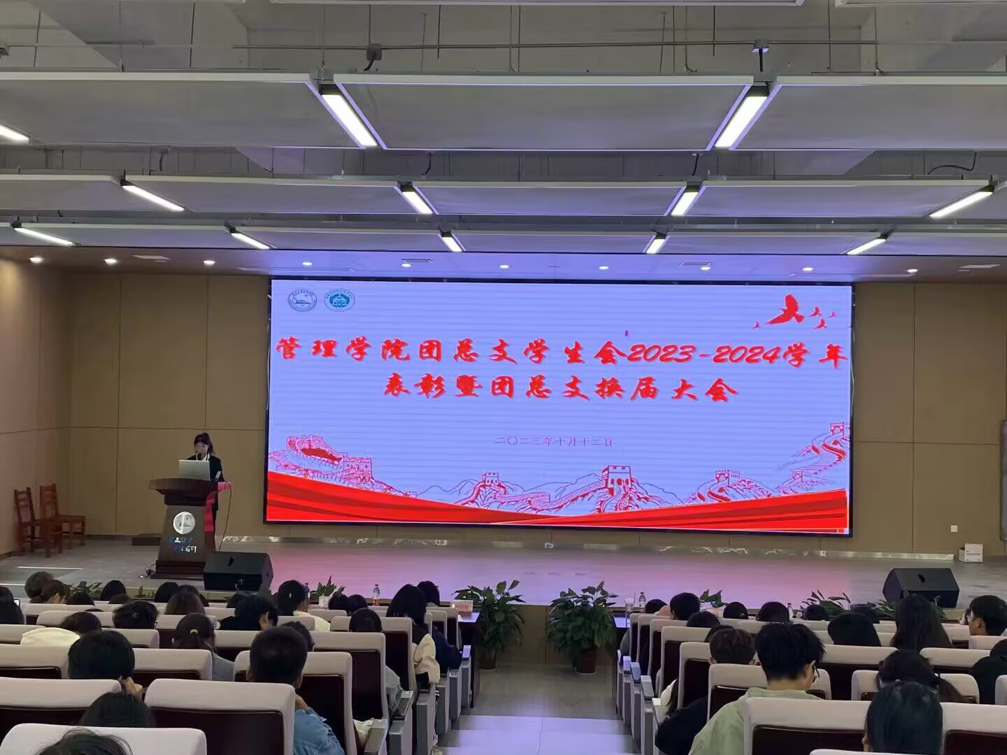 本网讯(通讯员张晶)为表彰上一届学生会成员,同时激励下一届学生会成员,管理学院于2023年10月12日12:30在教学楼B-112报告厅举办了第十八届管理学院团总支学生会换届大会暨表彰大会。大会全程秩序井然,总结了第十八届管理学院团总支学生会的工作,同时展望未来学生会的发展。