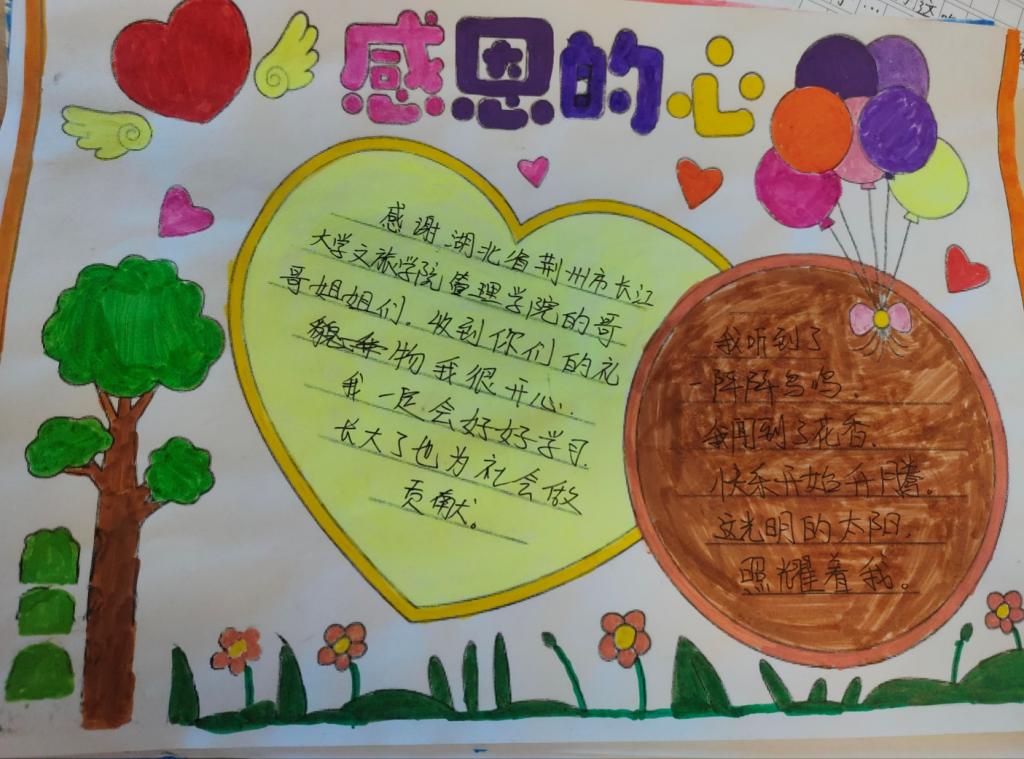 本网讯(通讯员 刘萌)近日williamhill官网管理学院收到了新疆博乐市的小朋友们送给“微心愿”圆梦人的感谢信和绘画作品,他们用稚嫩的笔迹和诚挚的话语表达着他们的感谢,并立志在长大后做一个对社会有用的人。