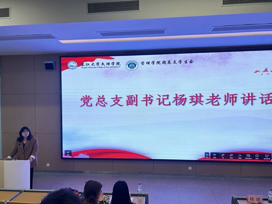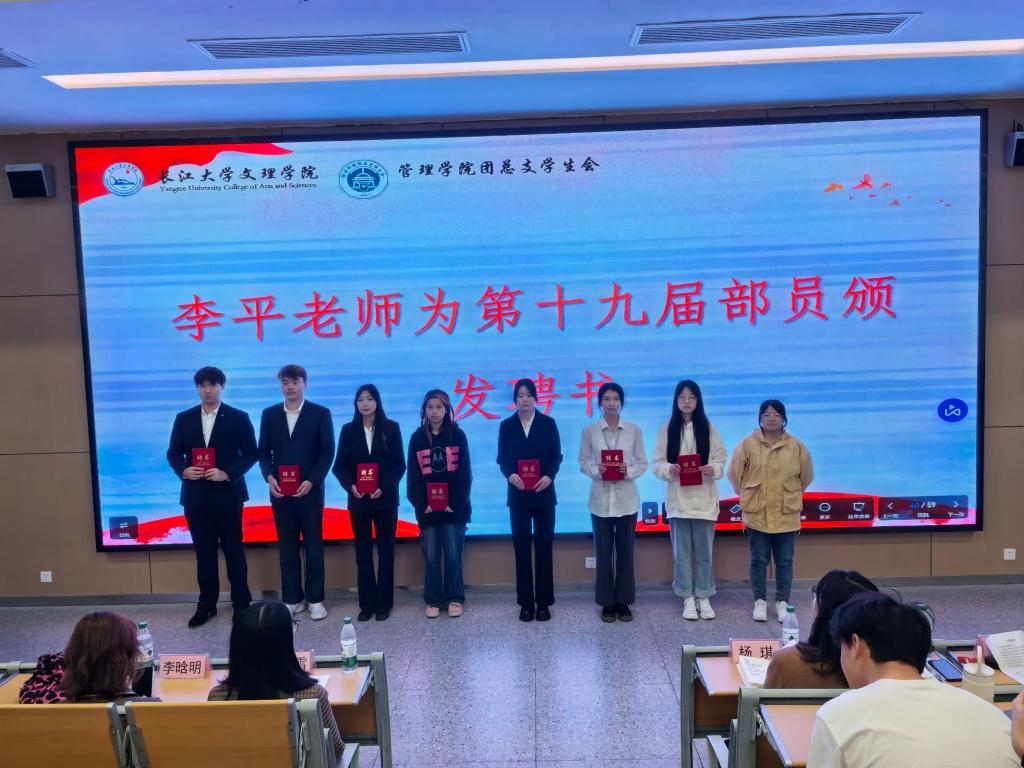 最后,管理学院党总支副书记杨琪发表讲话,对十九届学生会的辛勤工作表示了充分肯定,并对新一届学生会寄予厚望,明确指出不足,鼓励成员“学习工作两手抓”。