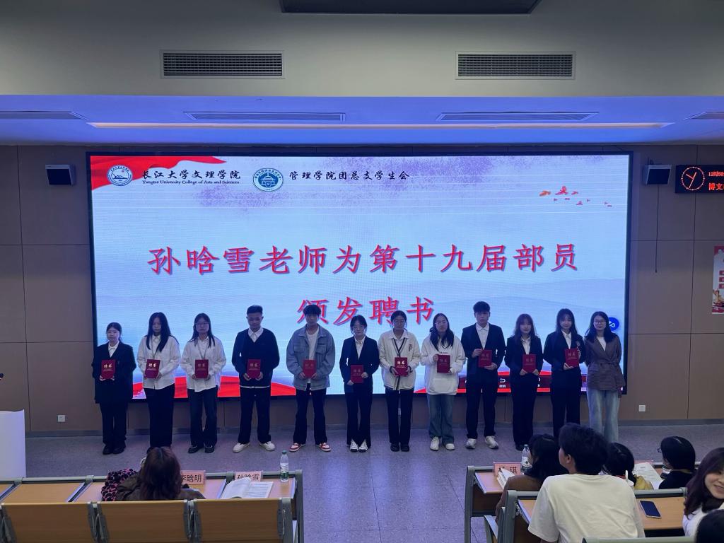 大会伊始,由系部领导、老师为优秀学生干部颁奖和发放聘书,高度赞扬了她们出色的工作能力和无私的奉献精神。第十九届管理学院团总支学生会副书记杨宇航发言如同一部精彩的纪录片,回首了那些难忘的时刻,总结了学生会在学术、文体和社会实践等方面所取得的显著成绩。
