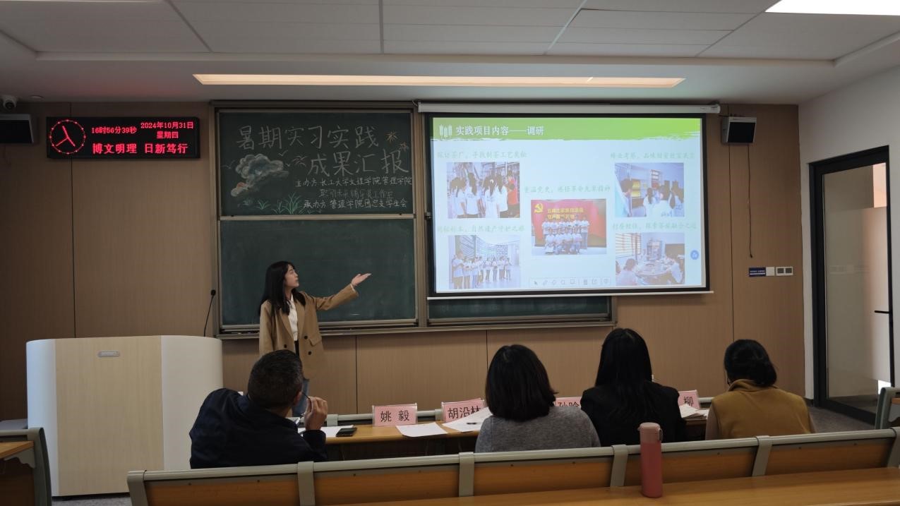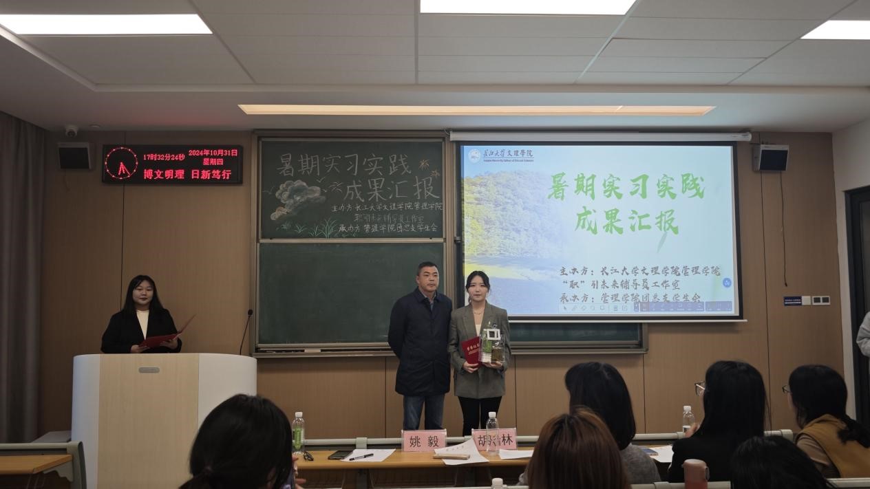 本网讯(通讯员 王燕)williamhill官网管理学院暑期实习实践成果汇报圆满结束,同学们带着满满的收获回归校园,交出了一份份亮眼的成果汇报。10月31日下午14:00管理学院团总支学生会在C-424开展“暑期实习实践归来话成长”活动汇报展示,本次展示比赛由曹子铮同学主持,管理学院院长姚毅、党总支书记胡沿林、党总支副书记杨琪,辅导员杨柳、李平、孙晗雪、李晗明担任评委,十余组小组参赛。