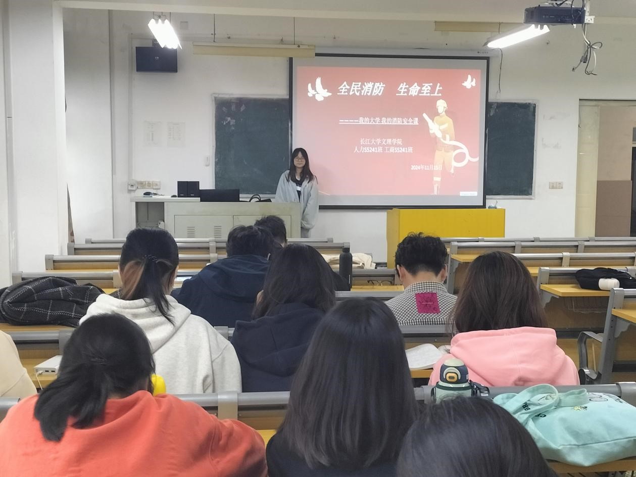 为了提高同学们的消防安全意识,增强自我保护能力。人力S5241班、工商S5241班于2024年11月15日下午开展了以“全民消防,生命至上”为主题的校园消防安全宣讲月班会。班会上,同学们通过学习和讨论,深入理解了消防安全的重要性和相关知识。