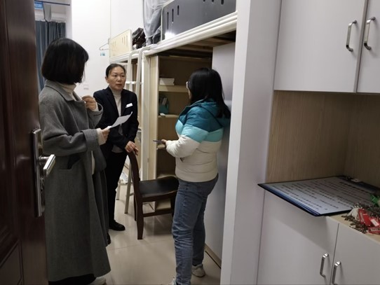 在查寝过程中,学院领导及辅导员们深入学生宿舍,认真细致地检查了每一间宿舍的卫生、用电安全、防火防盗以及学生的住宿情况等方面。他们详细询问了同学们的学习、生活以及心理状态,鼓励大家要保持积极向上的心态,合理安排时间,确保身心健康。同时,老师们也耐心指导同学们进行物品归类和垃圾清理,确保宿舍环境的整洁与舒适。