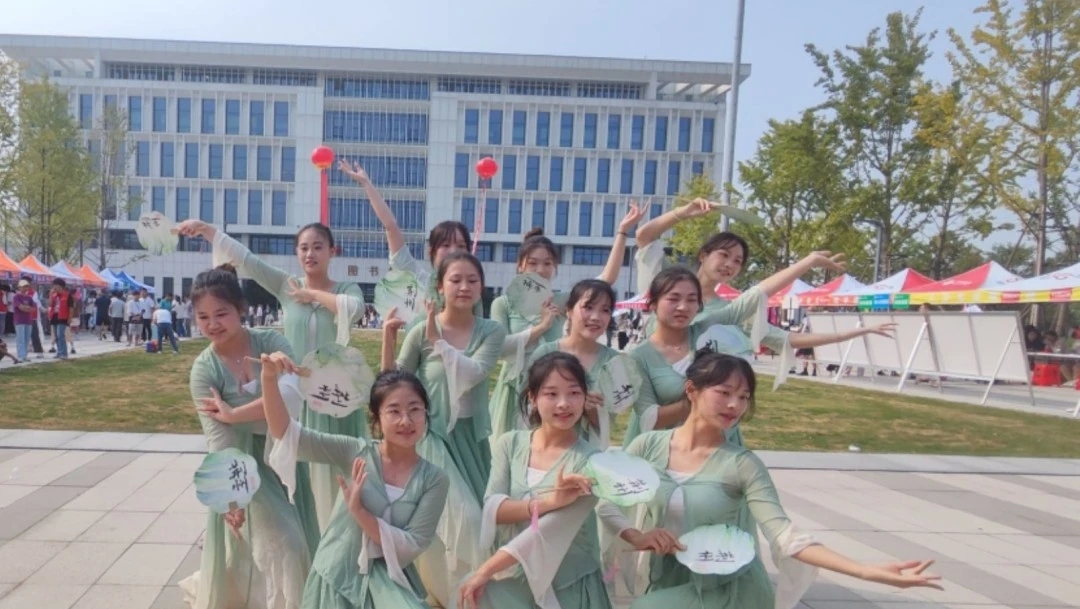 同时,管理学院也在迎新现场布置了各种装饰,还有管理学院舞蹈队伍为当天过生日的新生们表演舞蹈。