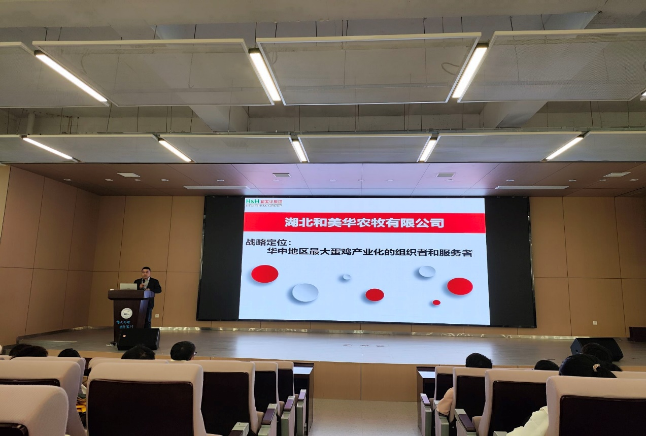 下午14:40,在教学楼B - 112报告厅举办了企业宣讲暨就业指导讲座,特邀湖北和美华农牧有限公司代表欧德军与上海合橙网络科技有限公司代表沈瑜主讲,管理学院众多大三大四学生踊跃参与。讲座开始,学校负责人阐明就业指导对学生职业发展的重要性。欧德军详细讲解湖北和美华农牧有限公司的文化、发展历程与路径,并就就业市场趋势给出职业规划建议;沈瑜分享上海合橙网络科技有限公司前沿信息,包括业务布局、优势、入职流程与电商班培养模式,还解答了学生关于招聘岗位、职业发展、薪资待遇等疑问,使学生深入了解外贸行业机遇与挑战。互动环节中,学生积极提问,企业代表耐心回应,气氛热烈。