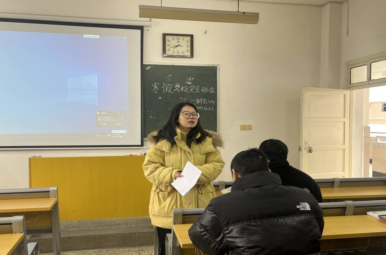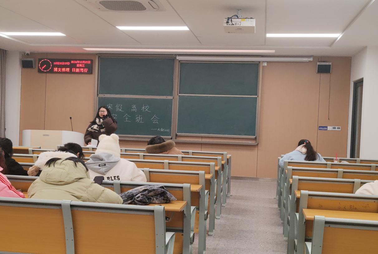 本网讯(通讯员王燕刘雅茹)在寒假来临之际,为了切实增强同学们的安全防范意识,保障每一位同学都能拥有一个安全、欢乐且充实的假期,2024年12月26日在晚自习期间,我院辅导员老师们深入各个班级教室,组织开展了以“寒假离校安全”为主题的班会活动。