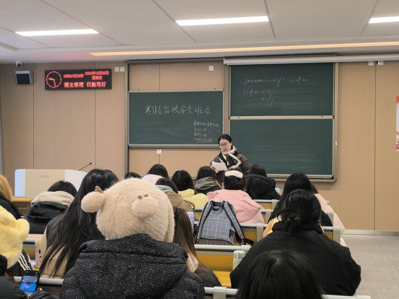 最后,辅导员老师鼓励同学们在假期中积极参与社会实践活动,拓宽视野,增长知识;提醒同学们要合理安排假期时间,注意劳逸结合,保持良好的生活习惯;并衷心祝愿大家能够度过一个丰富而快乐的寒假。本次寒假离校安全班会的成功举行,不仅提升了同学们的安全防范意识,更为大家度过一个平安、愉快的假期提供了有力保障。