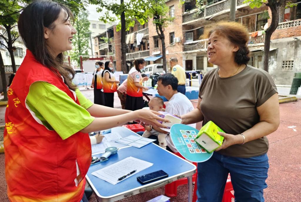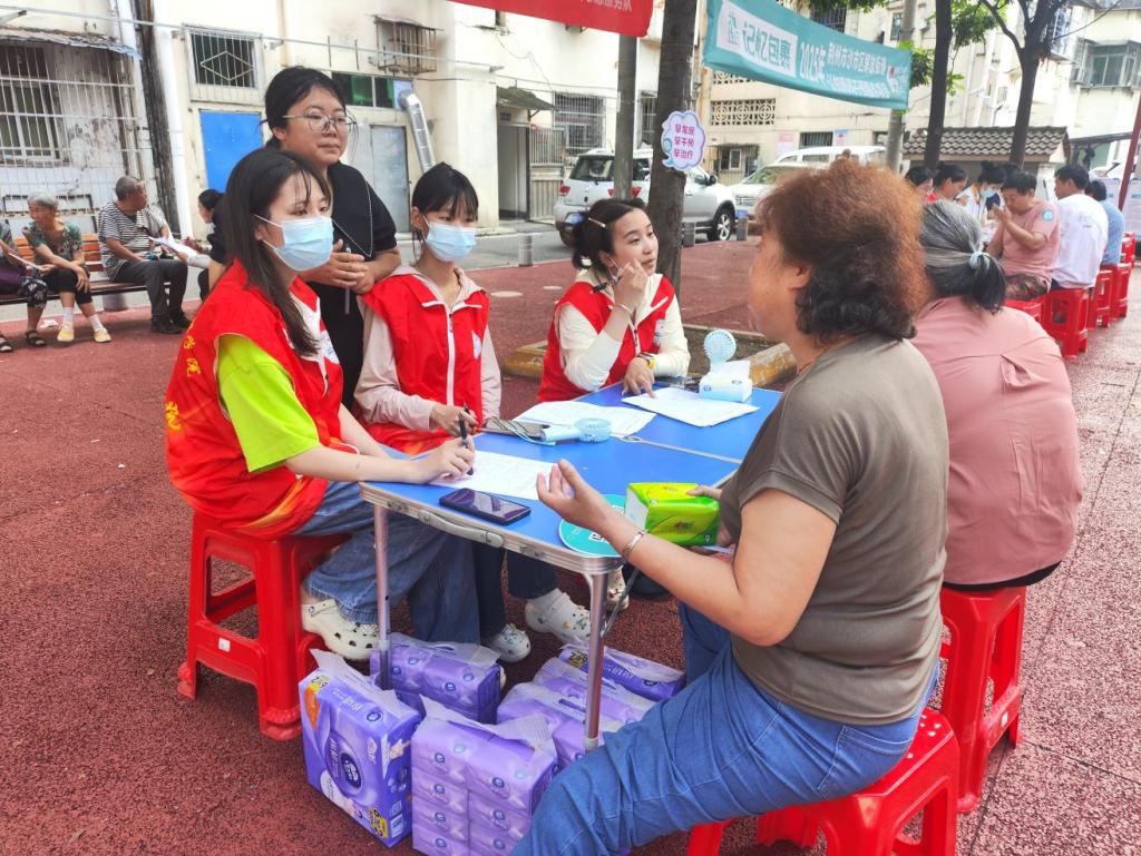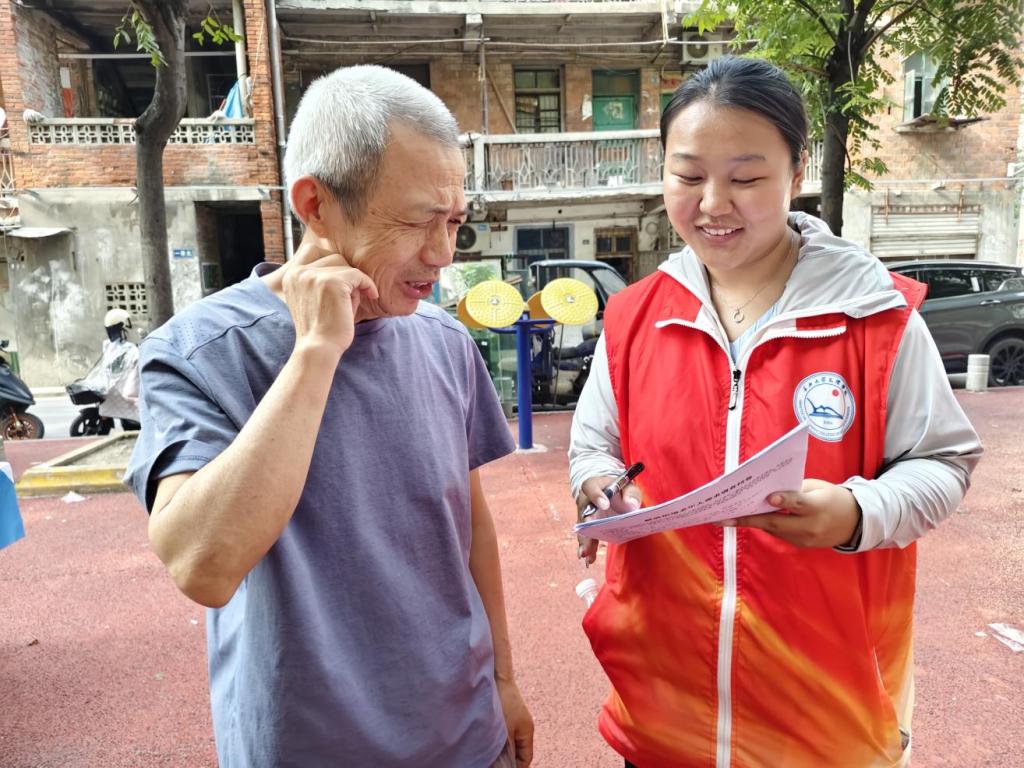 活动现场,志愿者们身穿统一红马甲,在社区广场设置咨询点,进行健康筛查。面对前来参与的老人,他们耐心细致,逐题讲解问卷内容,涵盖基本信息、养老模式、健康医疗、精神文化等多个方面。无论是围坐在蓝色桌旁交流,还是在社区长椅上一对一沟通,亦或是陪伴行动不便的老人漫步交谈,志愿者都以热忱的态度,让老人轻松参与健康筛查,真实表达需求。活动现场也有血压、血糖、认知障碍等筛查活动,关注老人的身体健康。