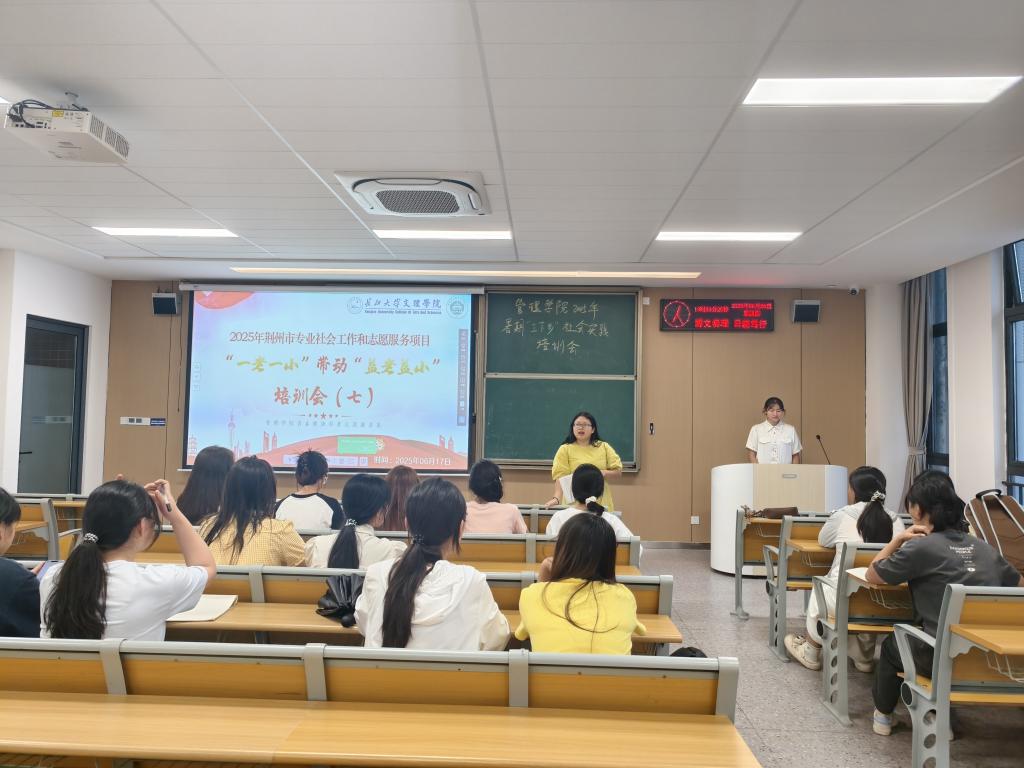 辅导员李平老师以近期“沙市区解放街道老年人需求调查问卷”为例,进行了详尽、实用的专项培训。她指出,与老人沟通时务必使用通俗易懂、温暖亲切的语言,确保信息传递清晰无误,避免使用专业术语或复杂句式。