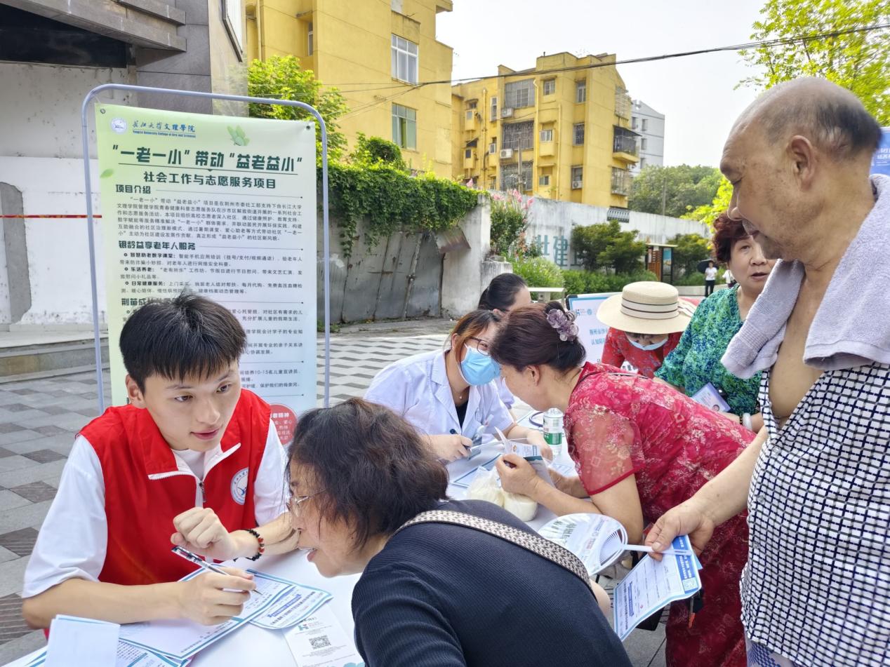 本网讯(通讯员 唐李红),2025年7月9日上午williamhill官网管理学院“益老益小”专项志愿者服务队来到了丽景嘉园协助荆州市四叶草社会工作服务中心开展“健康筛查”志愿服务活动,为社区的老年人进行健康筛查。