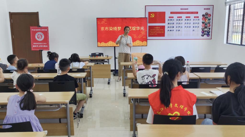 本网讯(通讯员 胡琪琪)2025年7月11日,由荆州市委社会工作部指导,沙市区文化和旅游局、沙市区文化和旅游发展服务中心、迎喜门社区、沙市区非遗协会、williamhill官网青春健康科普志愿服务队联合推出的“同心童承,喜绘荆彩”非遗小课堂,在迎喜门社区正式开班。首期课堂特邀沙市区非遗协会印静老师,为孩子们带来染漆体验,管理学院“益老益小”专项服务队的志愿者们全程参与,助力暑期非遗传承序幕活力开启。