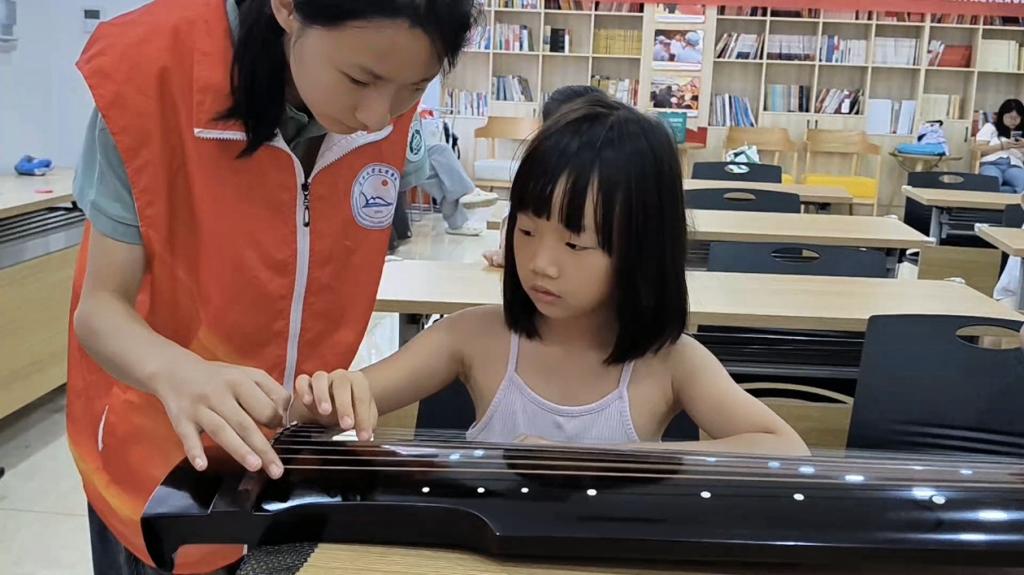 7月15日,迎喜门社区的活动室里琴声悠扬,一堂浸润着千年古韵、又满是童真好奇的古琴课缓缓开启。本次活动特邀沙市古琴艺术非遗代表性传承人余刚老师授课,管理学院的志愿者们早早到场布置场地,全程为活动保驾护航。