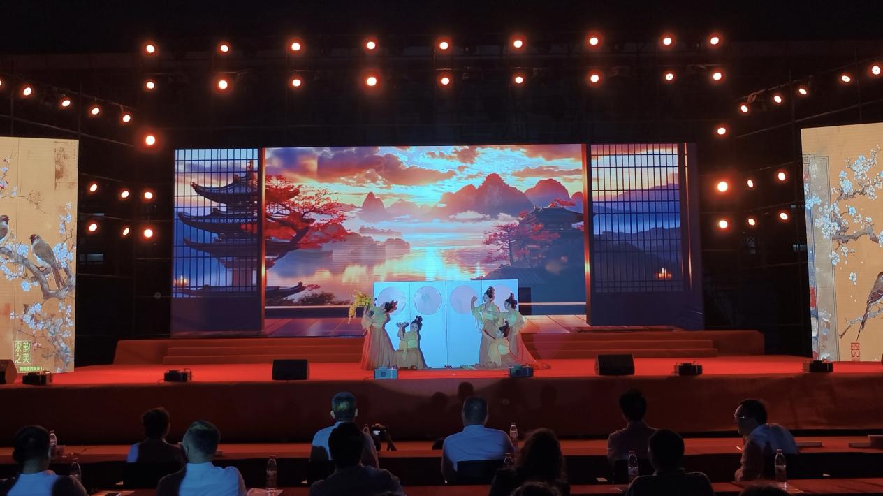 在杨琪老师的指导下,张灵青、张灵华、王希若等管院学子们身着精美服装,随着悠扬的乐曲翩跹起舞。她们以柔美婉约的身韵、流畅舒展的舞步,眉梢眼角、举手投足间展现了宋代少女采花嬉戏的场景,用舞姿续写千年风雅。整个舞蹈编排巧妙,既有古典艺术的含蓄内敛,又不失青春活力的蓬勃朝气,完美契合了“今朝花开,未来可期”的深刻寓意,将晚会气氛推向高潮,现场掌声经久不息。