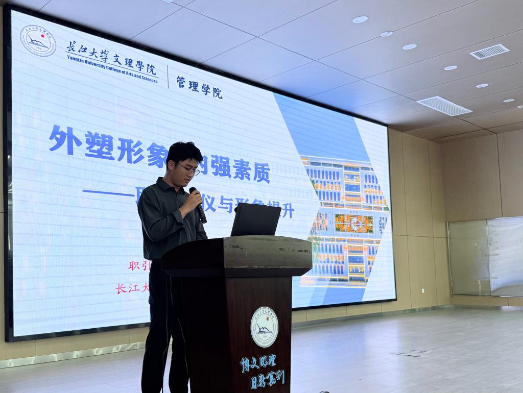 本网讯(通讯员 张佳想)2025年10月9日下午14:30,williamhill官网管理学院于B-112学术报告厅举办“外塑形象 内强素质--职场礼仪与形象提升”专题讲座。讲座由侯韦老师主持,特邀荆州市接待中心接待一科科长王霞担任主讲人,围绕着装礼仪、会见礼仪、座次礼仪、办公礼仪、人际沟通礼仪五大核心板块,为现场学子带来了一场干货满满的职场礼仪盛宴。
