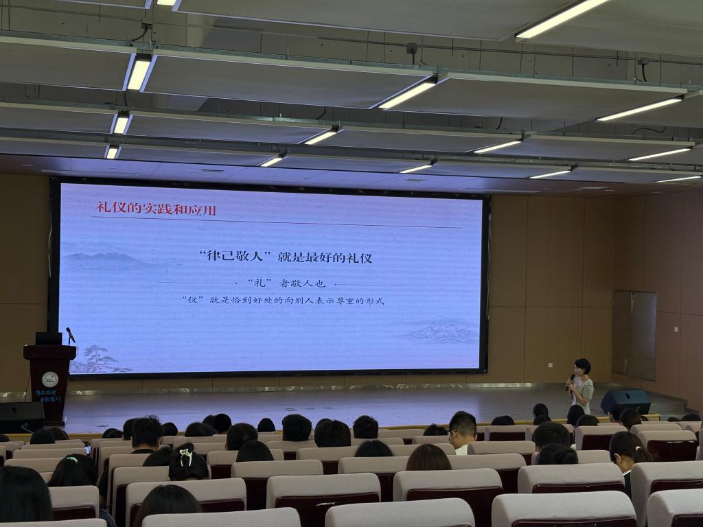 王霞科长提出“律己敬人”是礼仪核心,强调仪容是公务活动的“第一张名片”。她通过对比不同行业着装案例,让同学们直观理解不同行业着装的细微差异,助力大家精准塑造职业形象。