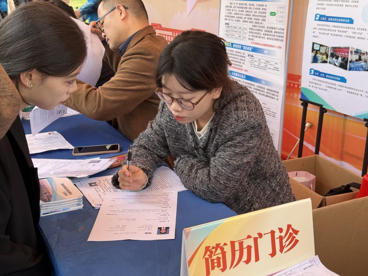 为切实提升毕业生的求职竞争力,管理学院在会场核心区域设立了“综合服务区”。服务处不仅提供免费打印简历服务,解决毕业生的燃眉之急;还邀请了职引未来辅导员工作室成员人力资源管理专业副教授张勤、管理学院党总支副书记杨琪、辅导员李晗明组成“简历门诊”团队,为毕业生提供一对一的简历诊断和修改建议。老师们凭借丰富的经验和专业知识,从简历内容、排版设计到语言表达等方面,为学生提出详细的改进意见,帮助他们打造更具竞争力的求职简历 。