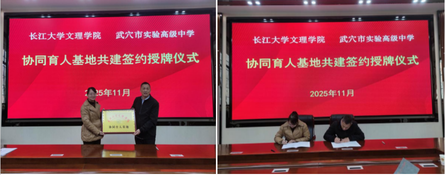 (通讯员 郭艳凤)为建立长期友好合作关系,促进资源共享与高质量发展。11月19日,学校与武穴市实验高级中学就协同育人基地共建举行签约暨授牌仪式。院长助理曹骥,招生处处长刘杰、管理学院党总支书记胡沿林,武穴实验高级中学校长、高一、高二、高三年级组主任出席。