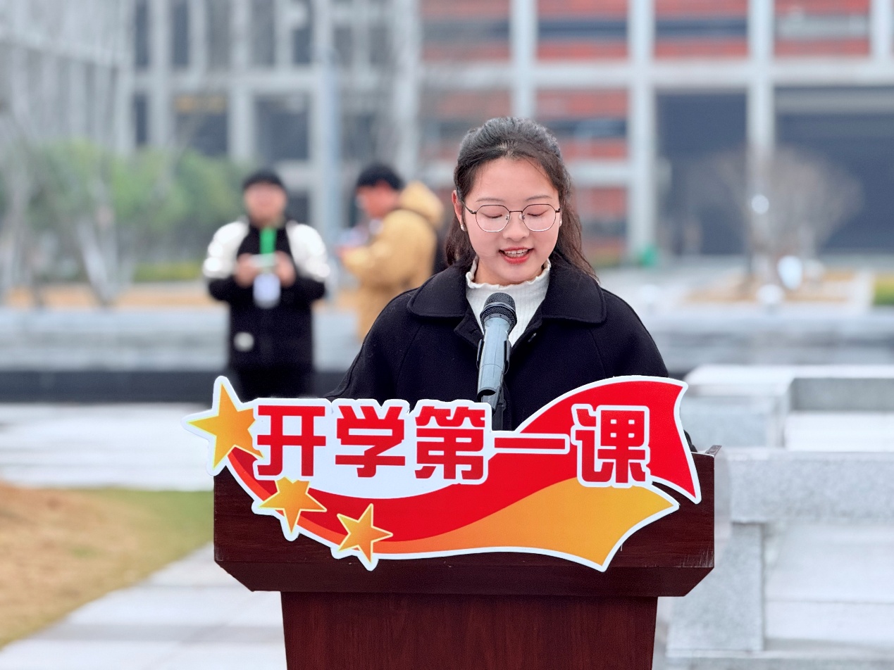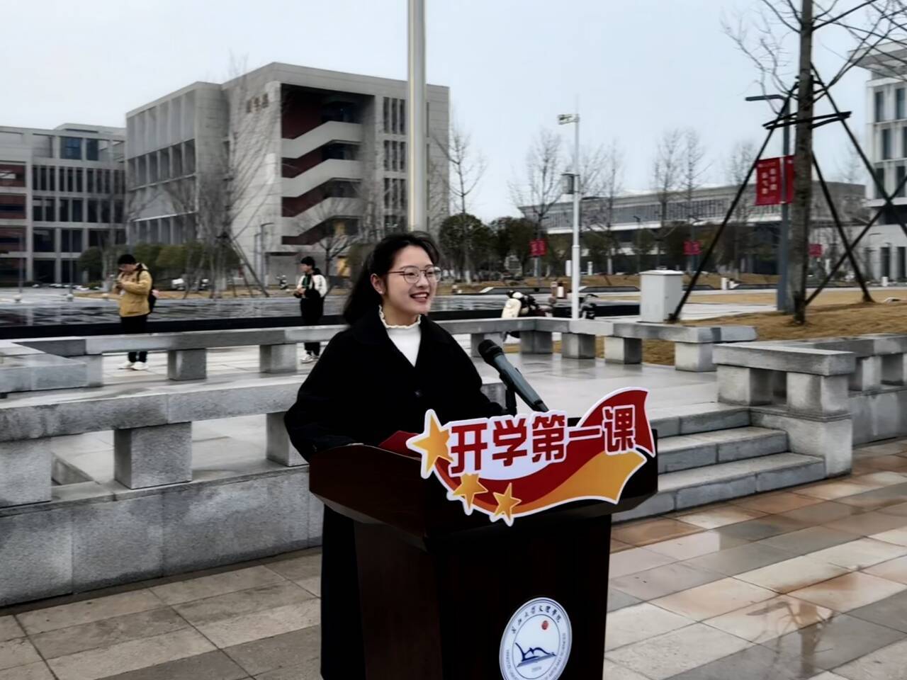 升旗仪式后,管理学院大数据与会计专业学生张灵华作为学生代表,以《与春天一同拔节,与骏马一同奔腾》为题发言。她结合2026丙午马年精神内涵,以春日生长、骏马奔腾为喻,向全体同学发出青春倡议,号召大家以“三匹马”的姿态砥砺前行。