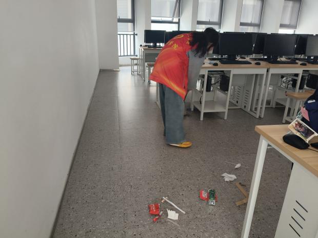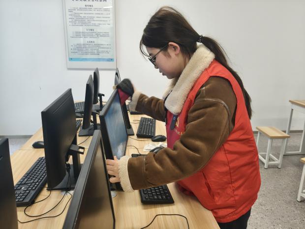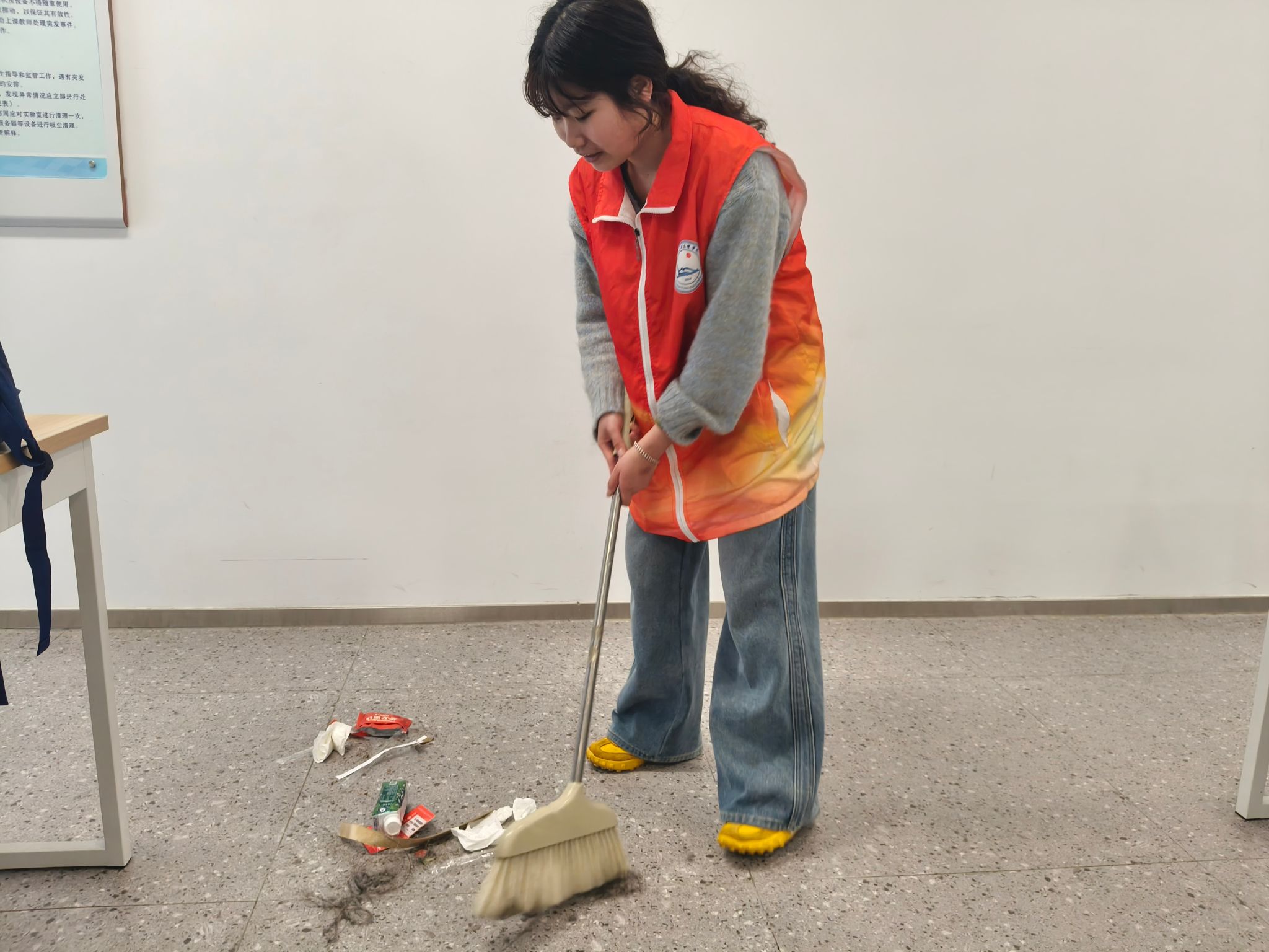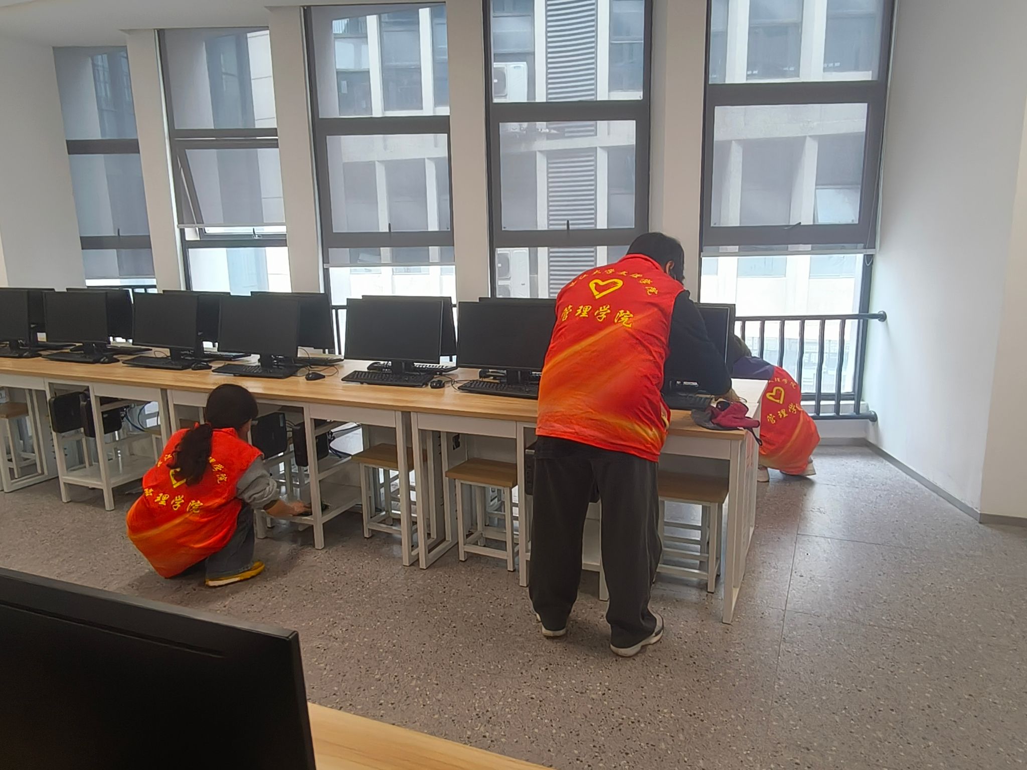 活动前,服务队成员明确分工,有序协作,携带清洁工具抵达实验室。大家秉持严谨认真的态度,对管理学院实操室中的机械设备、桌面、地面及公共区域进行全面清扫。擦拭键盘与桌面时,细致去除污渍与灰尘;整理机械设备,严格按规范归位,确保线路摆放整齐;清理实操室遗留的垃圾。同时,成员们主动检查实验室安全隐患,切实落实实验室安全管理要求。