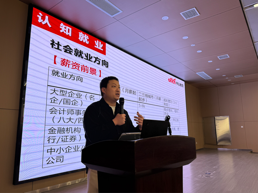 讲座的核心指导环节由中公教育资深讲师石代老师主讲。石代老师深耕职业规划与升学就业指导领域多年,拥有丰富的公职类考试、研究生入学考试备考指导经验,擅长结合学生实际情况提供个性化规划建议,其专业的讲解和实用的方法论深受学子认可。本次讲座中,石代老师围绕 “科学决策” 核心,为同学们搭建了系统的职业规划方法论体系。