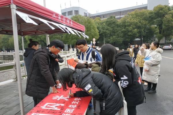 在泮池转角,学雷锋“我承诺我奉献”百人签字活动引起了过路同学的注意,学生干部积极主动给前来前面的同学宣传雷锋精神,引导大家学雷锋,从身边做起,从小事做起,尊重他人劳动成果,不流于形式,让雷锋精神伴随新时代的脚步成为同学们成长的动力,转为日常生活习惯、助人自助。