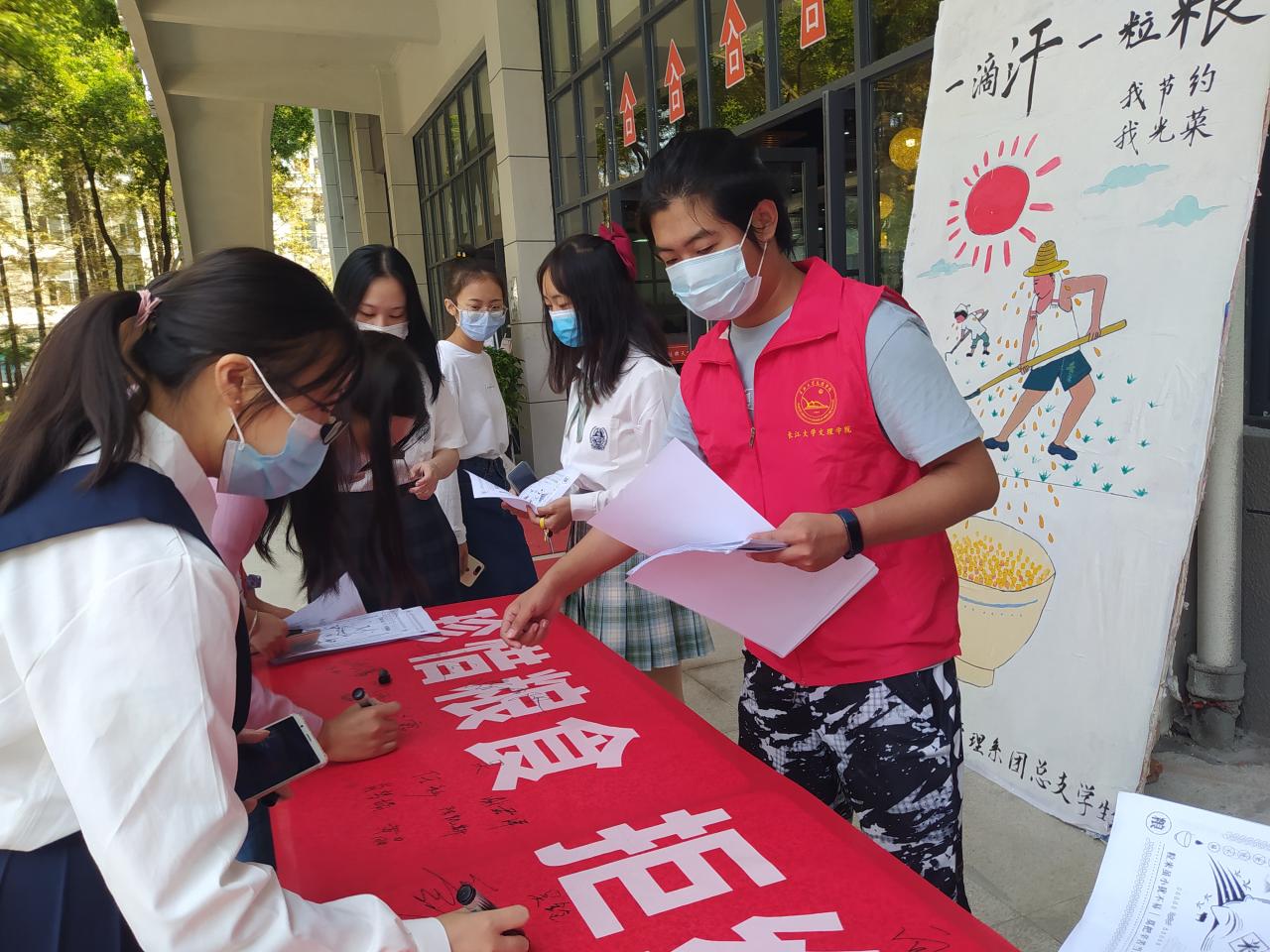 本网讯(通讯员 张宇琼)为贯彻落实习近平总书记关于制止餐饮浪费行为的重要指示精神,进一步弘扬中华民族勤俭节约的传统美德,9月17日-18日我系组织开展了“向餐饮浪费说不”为主题的系列活动,引领我院大学生以实际行动杜绝“餐桌上的浪费”。
