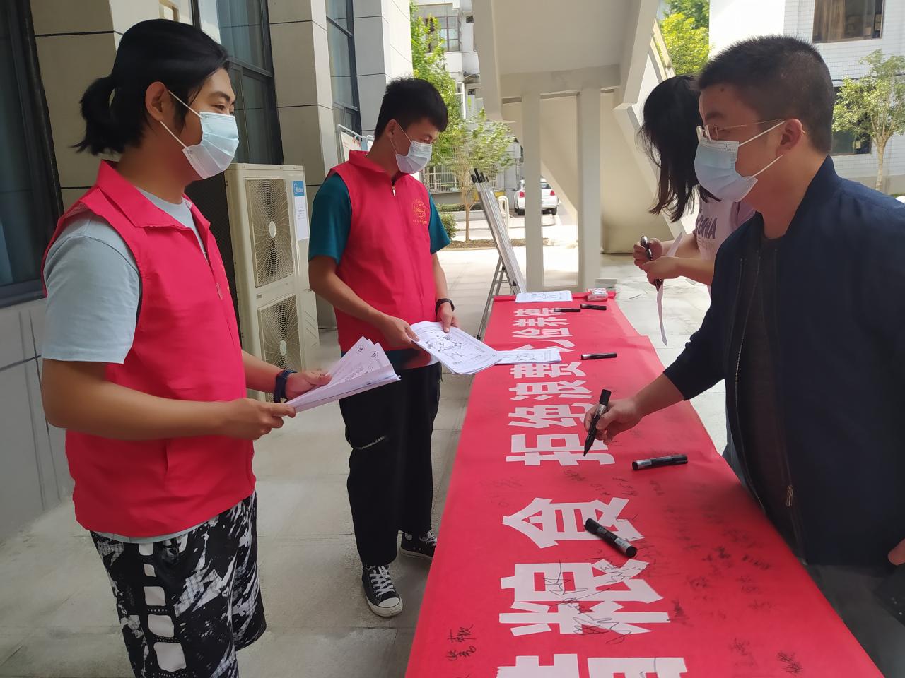 “您好,请您用餐时‘量力而行’,文明用餐。”9月18日,管理系志愿者来到学院城中食堂,拉起横幅,向来食堂就餐的老师、学生分发宣传单,呼吁老师、学生养成“合理点餐,拒绝餐桌浪费”的良好习惯,拒绝餐桌浪费,从点滴做起,从你我做起。活动引来不少老师、学生驻足了解,并在横幅上郑重的签字承诺。
