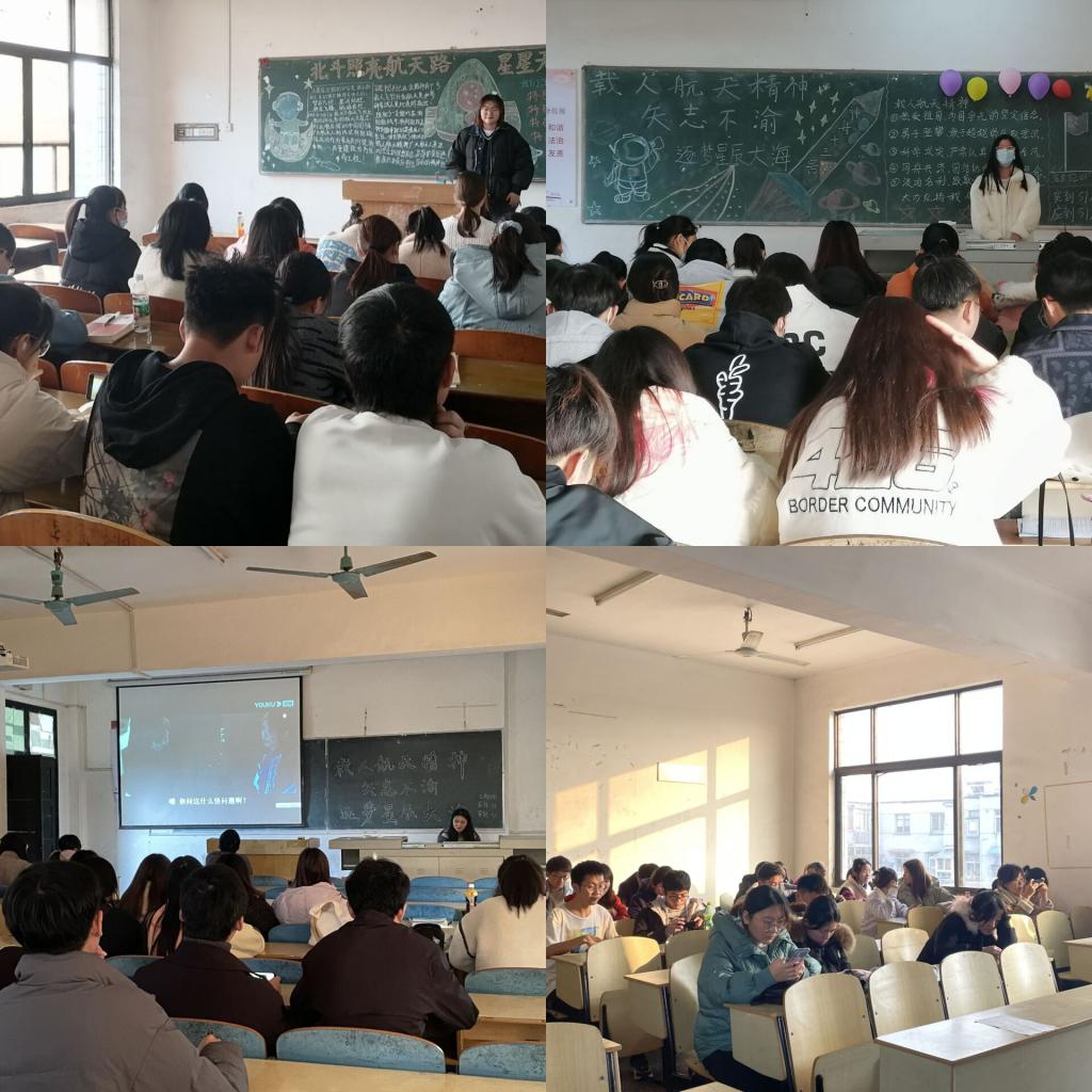 各班的团支书采用了多种方式来向同学们讲解本次团课的主题内容,使同学们了解到中国航天技术是如何从无到有,实现我国载人航天工程‘三步走’战略的重要目标。。会计一班团支书带着全班同学一起观看载人航天视频,让同学们更直观的了解我党的载人航天精神。会计二班团支书以PPT加黑板报的形式为同学们讲解中国一步步在载人航天领域走到世界前列的过程,其中列举出来的英雄事迹让同学们深刻认识到实现中华民族的伟大复兴的责任在于每一个人。