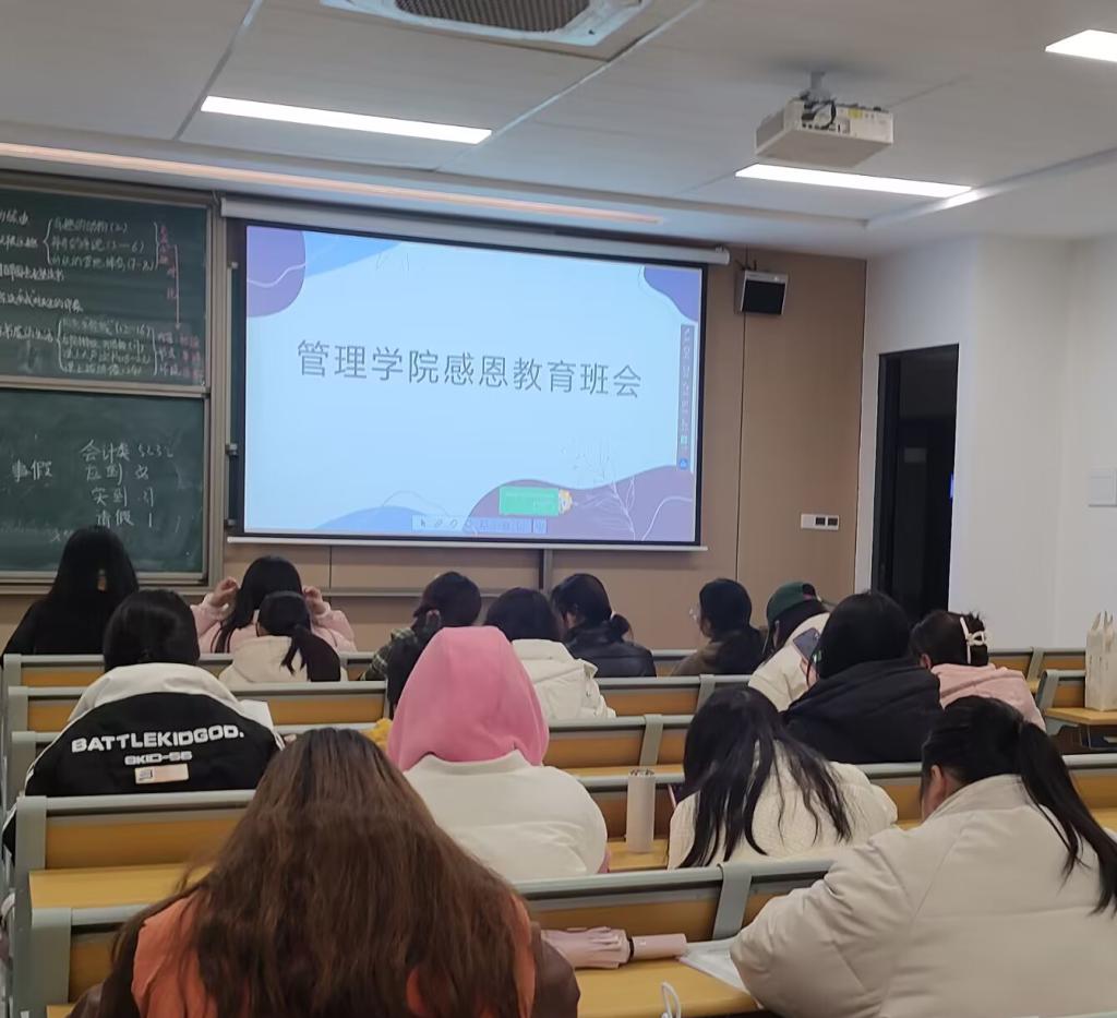 12月10日晚,管理学院各班积极开展“助学金受助学生感恩教育”主题班会。