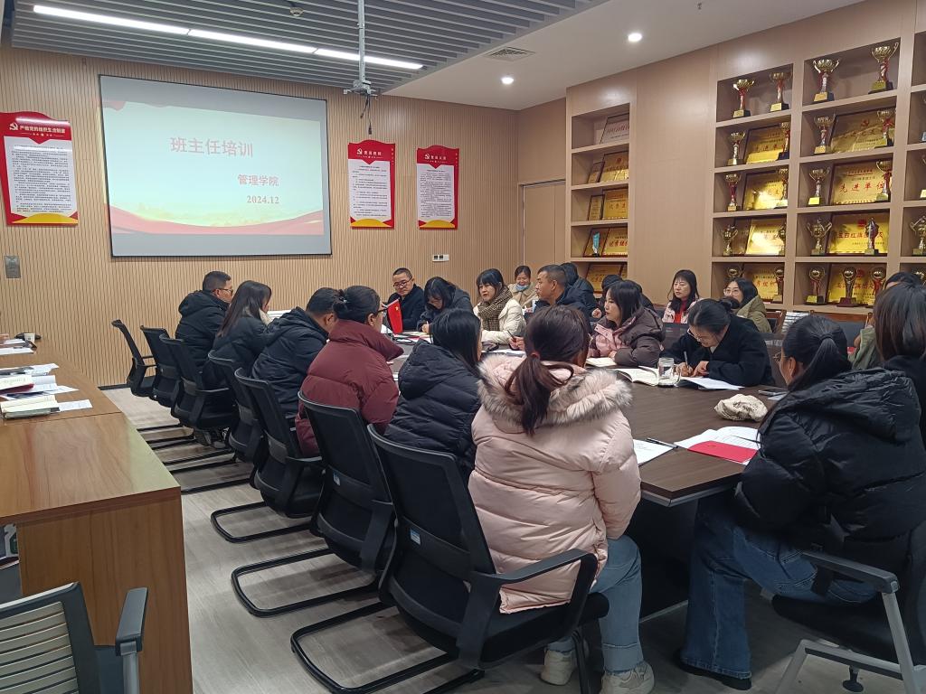 本网讯(通讯员:杨琪)12月12日14:00,一场旨在提升班主任队伍专业素养与班级管理能力的培训会议在管理学院圆满召开。本次培训汇聚了四名优秀班主任——周丹、戈绍银、杨倩、王文婕,以及管理学院全体教师,共同就班级管理、学生成长与教育实践等多个方面进行了深入交流与分享。