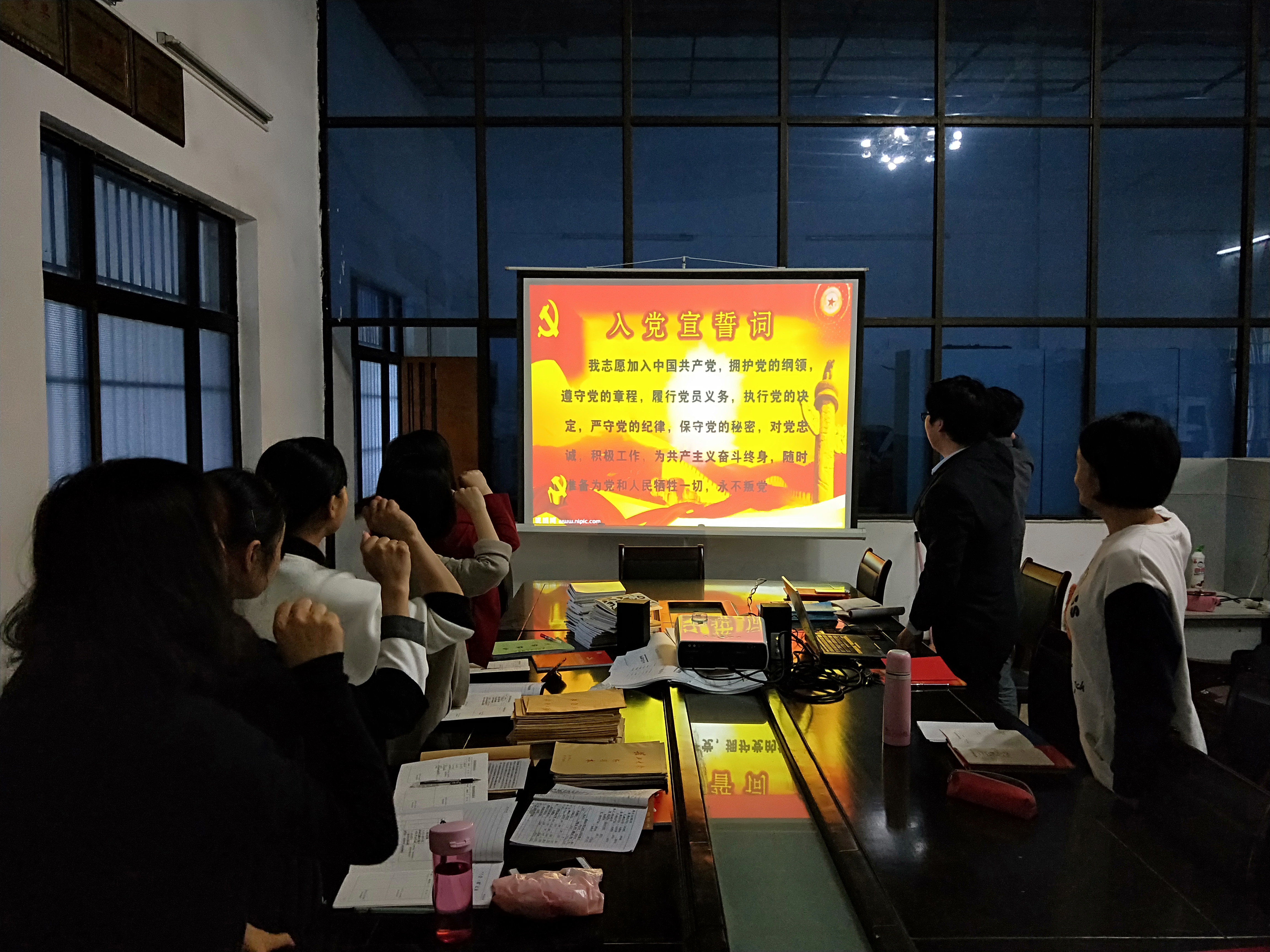 首先,全体党员以“主题党日”形式,交纳党费,重温入党誓词,集中诵读了新党章《党员》节选。