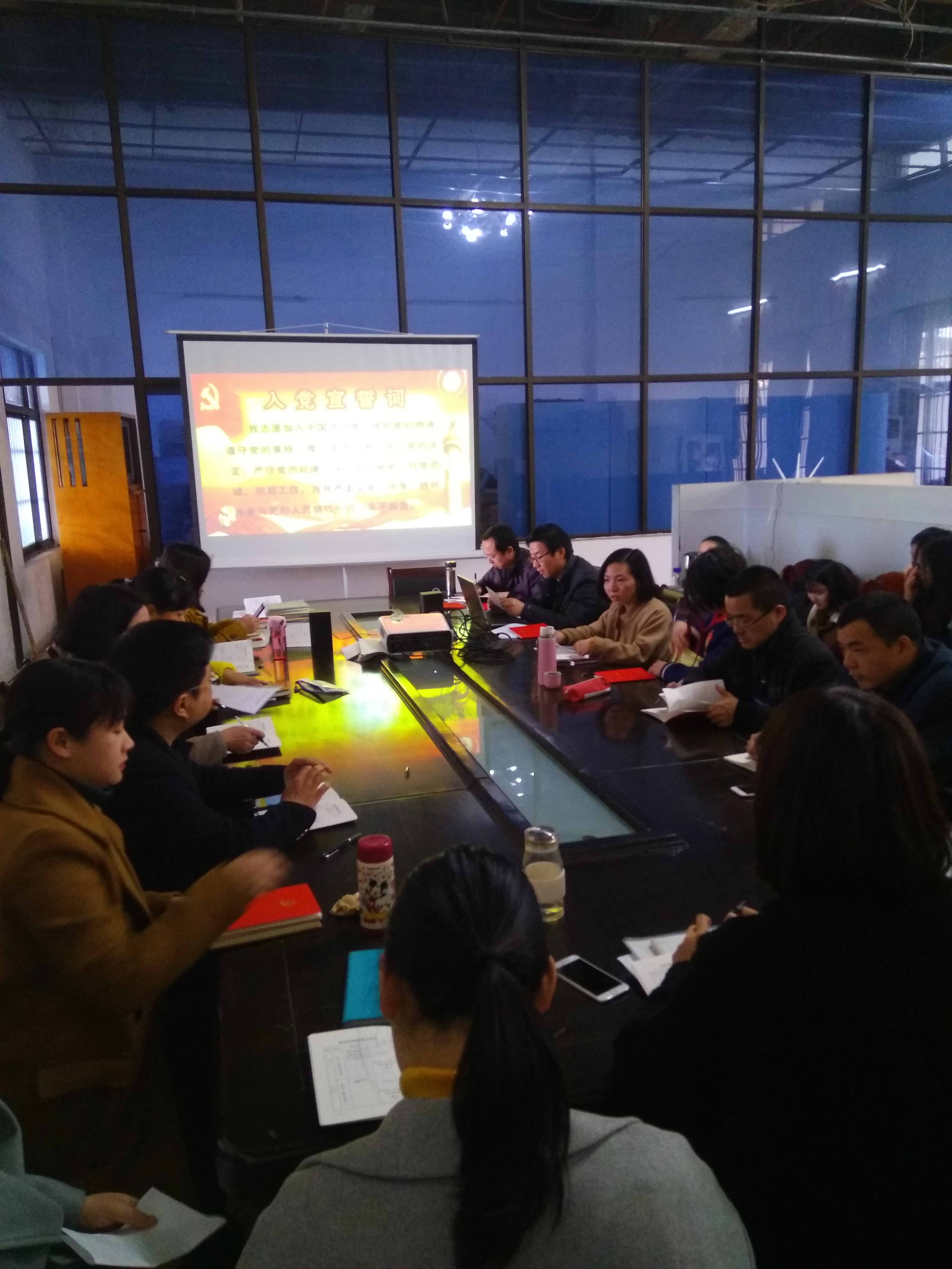 3月22日下午,工商管理系教工支部主题党日活动现场,全体党员庄严宣誓重温入党誓词,交纳党费、诵读新党章《总纲》,重点学习了《中国共产党第十九届中央委员会第三次全体会议公报》、2018年全国“两会”精神、《中共中央 国务院关于全面深化新时代教师队伍建设改革的意见》、长江大学三届四次教代会《学校工作报告》。