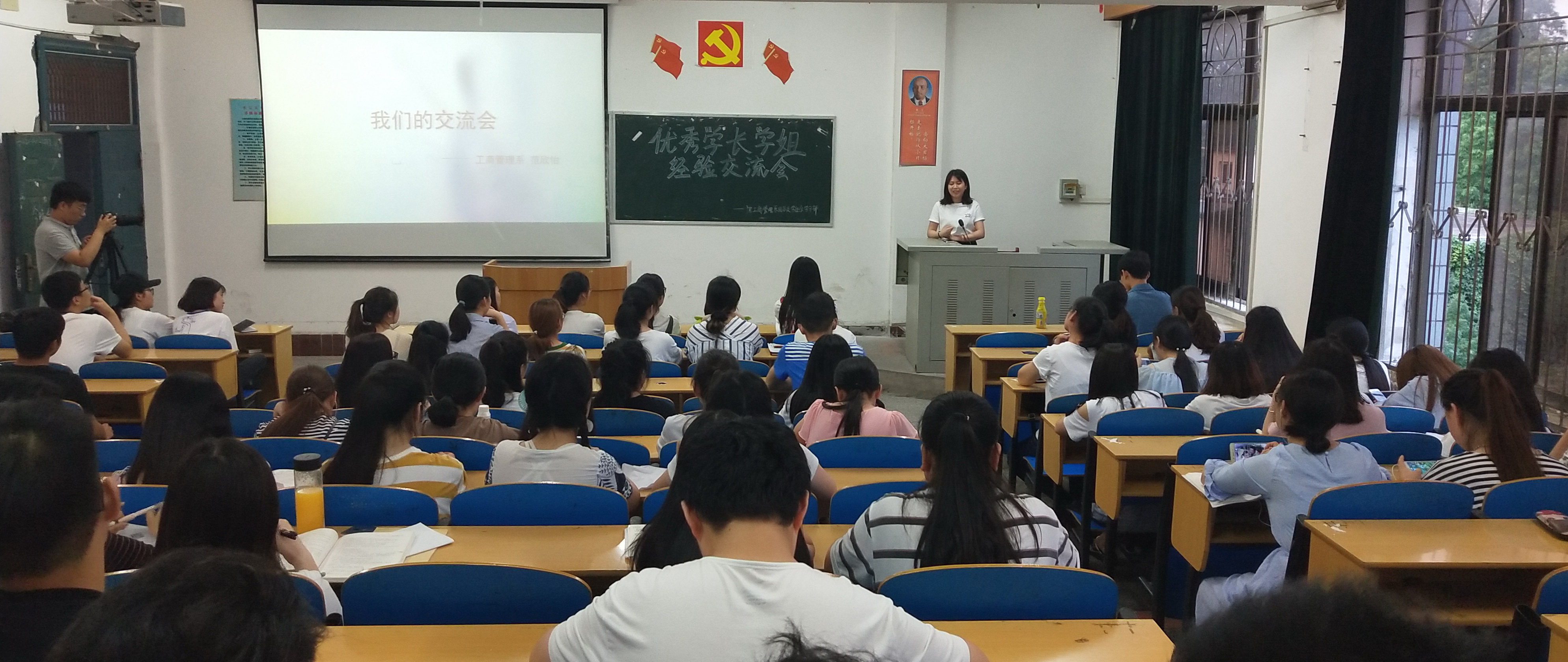 5月28日晚七点,我系“最美青春故事”优秀学长学姐经验交流会在1教414顺利举办。本次活动由系团总支主办,系学生会承办。会计学专业优秀毕业生、2018年十佳大学生范欣怡同学主讲,我系17级全体本科生学生参加。