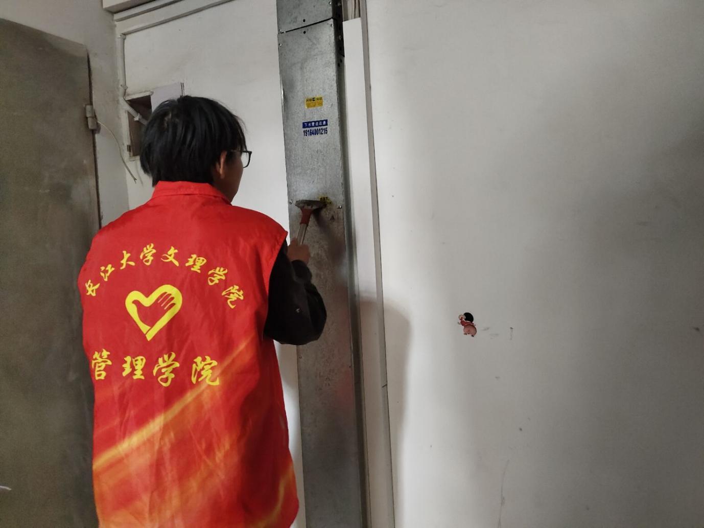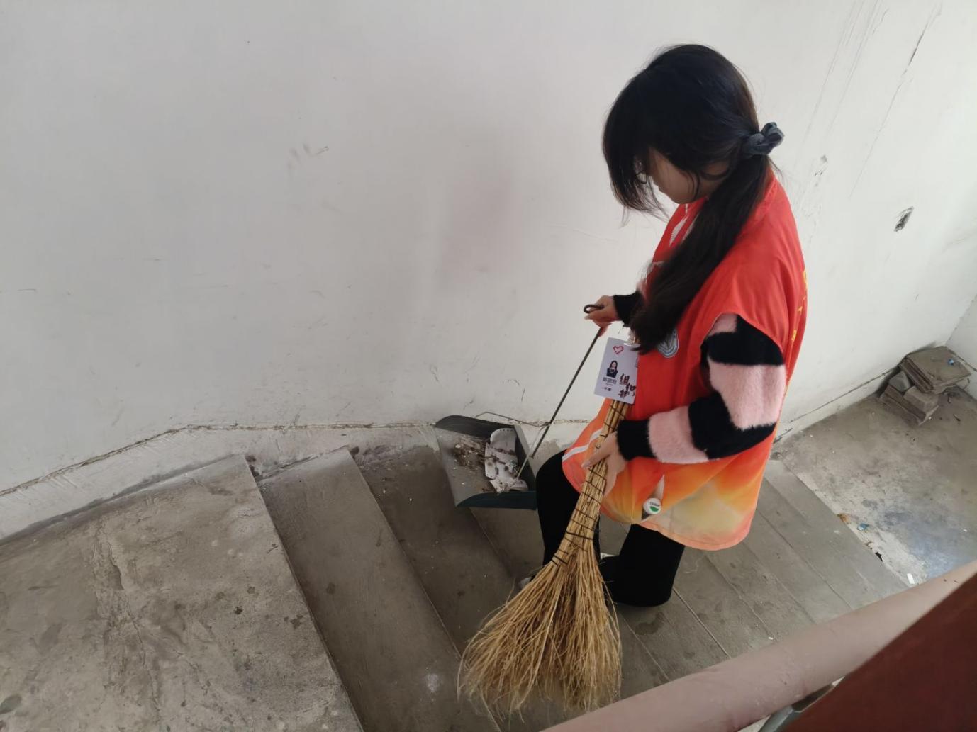 汗水浸湿了衣衫,却挡不住大家服务的热情。志愿者们手上沾满了灰尘,换来了环境的洁净。充分展现了当代大学生的责任与担当。经过数小时的辛勤付出,单元楼内的小广告被彻底清除,楼梯干净,环境面貌焕然一新。