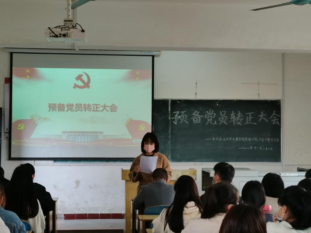 本网讯(通讯员 王彦郦) 2022年11月22日星期二中午12: 30,我学院学生党支部于一教407召开预备党员转正大会。讨论关于刘昱等2名同志转正为正式党员。会议由车云霄同志主持,该支部在校其他党员同志同时参加会议,就此发表意见。