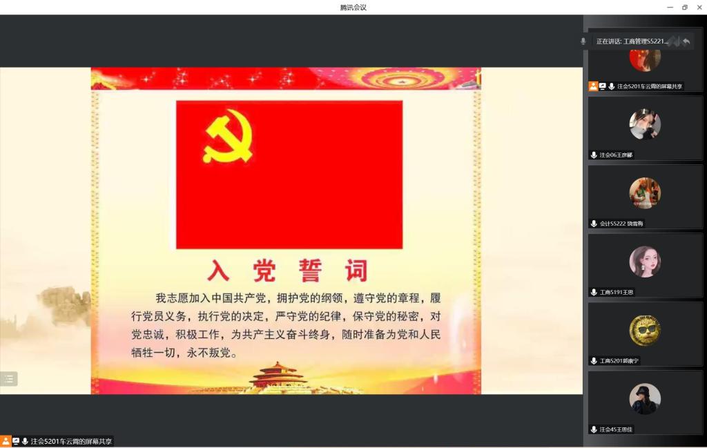 本网讯(通讯员 王彦郦) 2022年12月15日星期四下午14:00, 我学院学生党支部以线上形式召开预备党员转正大会,讨论关于白湘同志转正为正式党员。会议由车云霄同志主持,支部其他党员同志同时参加会议,就此发表意见。