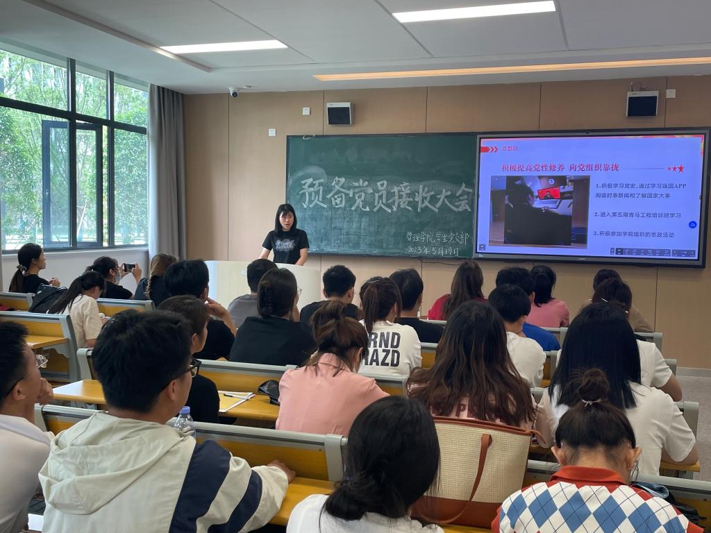 本网讯(通讯员 陈露)2023年5月19日星期五中午12:30,我学院学生党支部于A-103S召开预备党员接收大会。大会讨论关于周铃子等8名同志接收为预备党员。会议由路俊荣同志主持,该支部在校其他党员同志及入党介绍人参与此次议会。