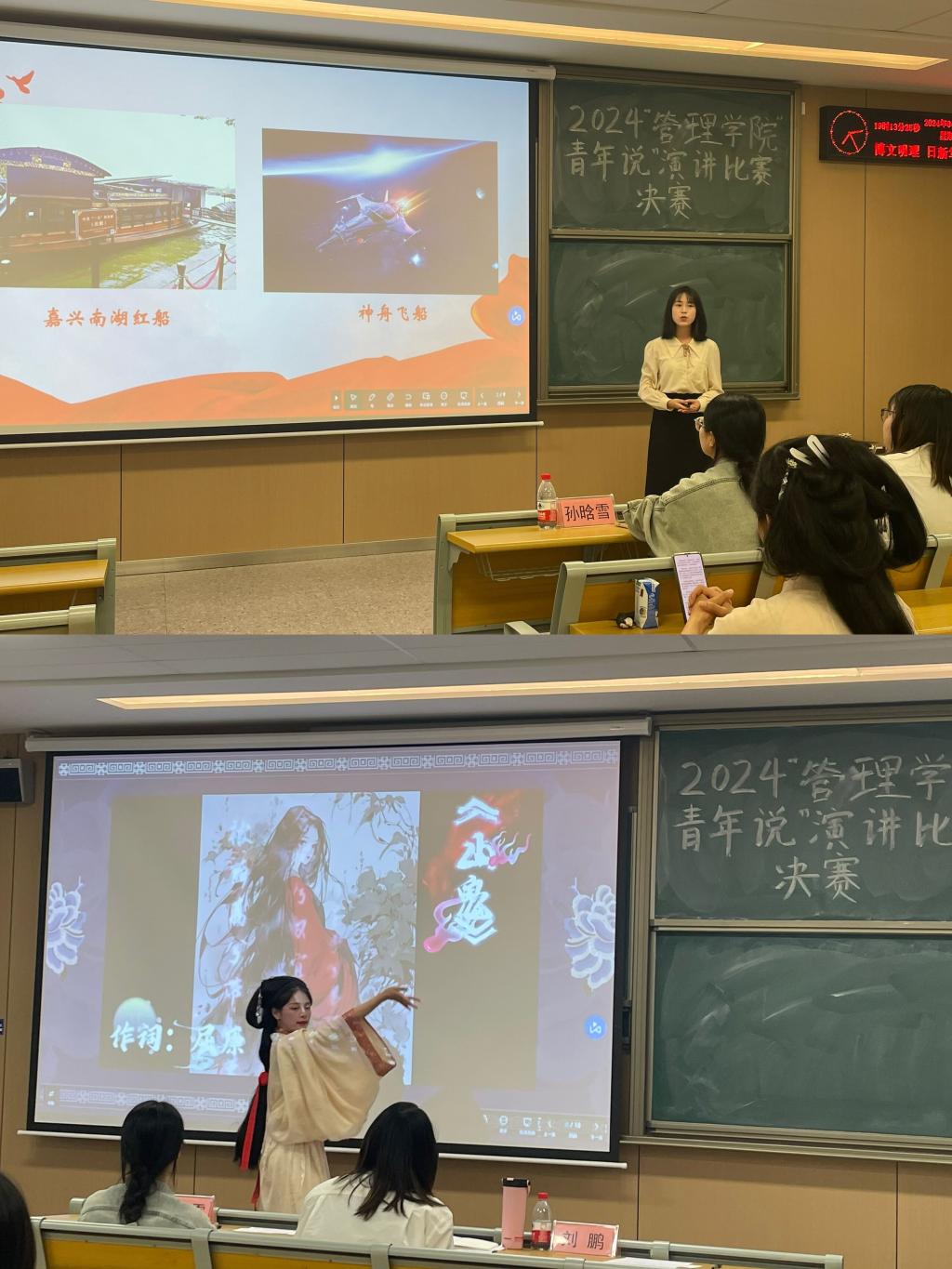 选手们或侃侃而谈,或在演讲过程中结合了中华民族传统文化与民族精神表演了一段优美的古风舞蹈,以鞭辟入里的阐述与深入独到的见解为现场观众奉上了一场精彩纷呈的思想盛宴,彰显了新时代的青年风采和管理学子的责任与担当,赢得了观众们的阵阵掌声。