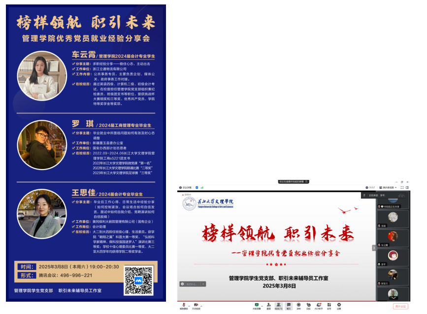 此次管理学院优秀党员就业经验分享会的成功举办,充分展示了管理学院学生党员学子的风采,也激励了大家以优秀党员为榜样,合理规划自己的未来职业生涯。今后,管理学院将继续举办此类活动,助力更多学子实现人生价值,为我国经济社会发展贡献青春力量。